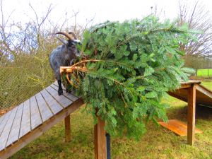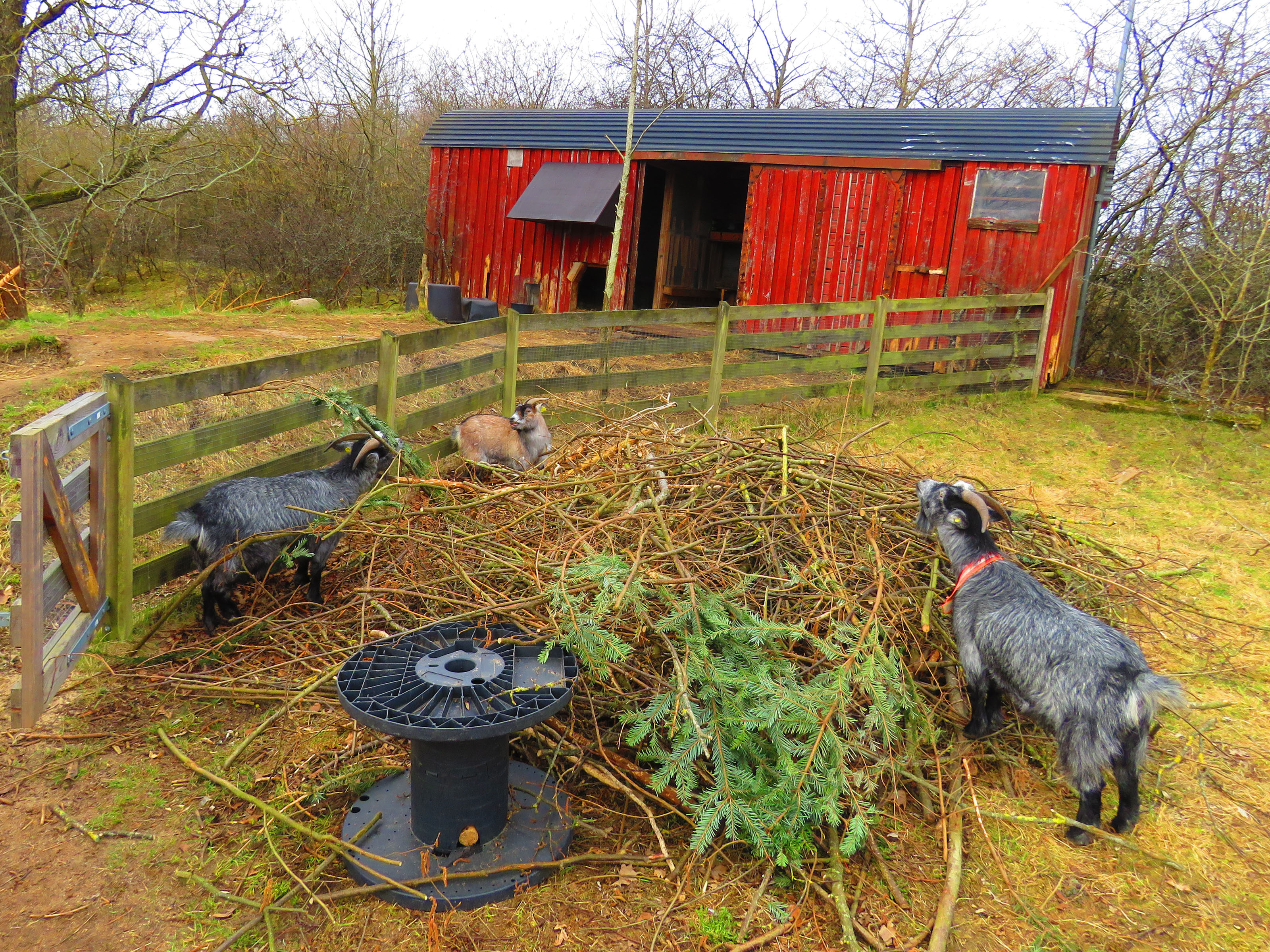 The goats working on the branches. Lots and lots of branches and pine coming from Jeanette’s land acquisition.