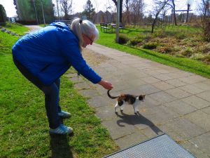 We met a little friend when we left the museum today! Such a sweet little cat, it came and said hi to both of us. It took me a long time to get the camera out, so the photo is kind of the aftermath. But kitty really liked some cuddles.