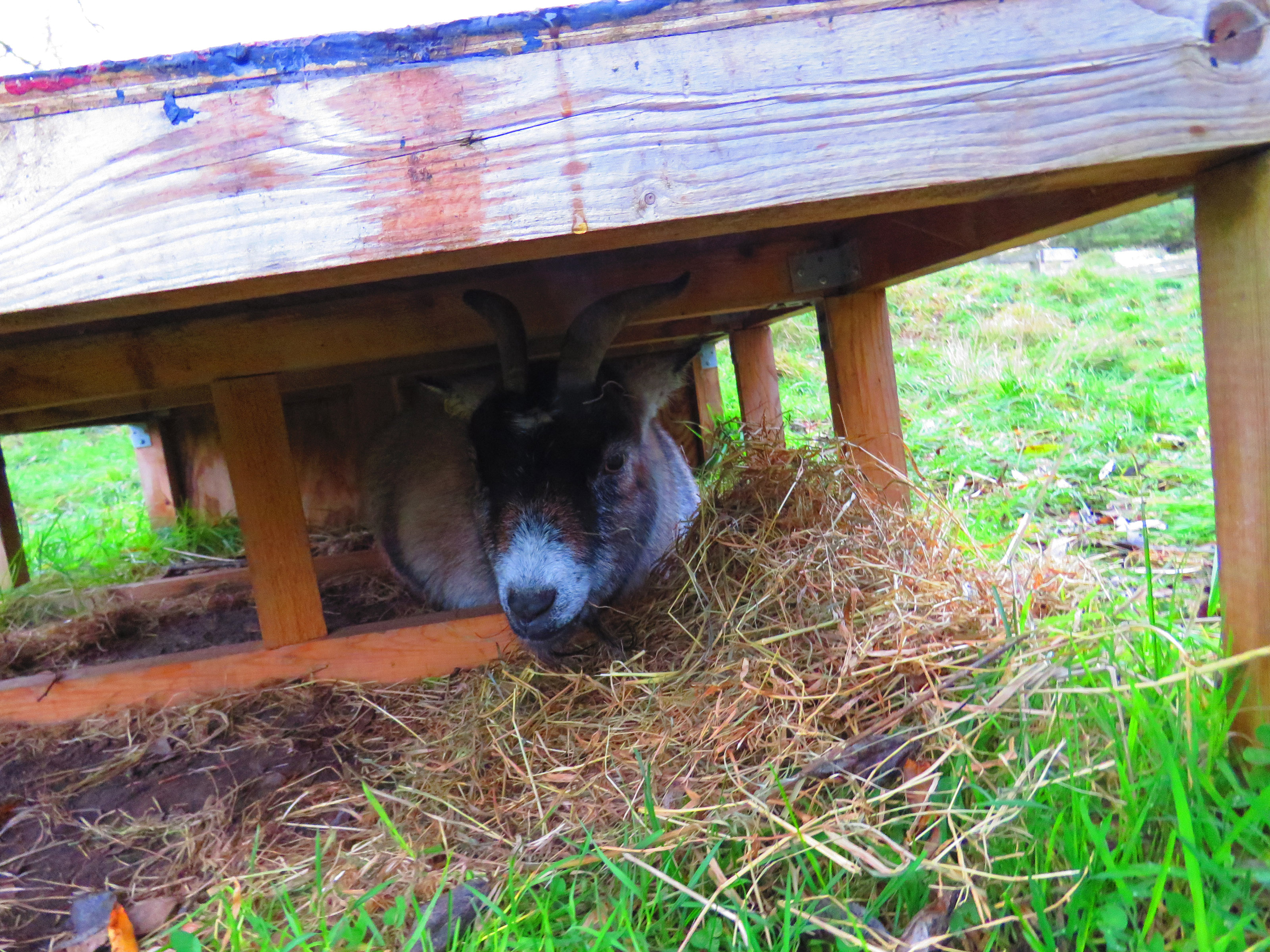 On the one hand it’s super cute seeing her tucked down under there. And I’m glad she’s got a dry spot where the big girls can’t really get to. But I also feel a little sad that she feels the need to. Hopefully she doesn’t go down there all time. Hopeully when the weather is drier she’ll be out with us more. She is getting to be an older girl, I don’t blame her for not wanting to run around with, and from, the younger girls. I just don’t want her to hide away all the time.
