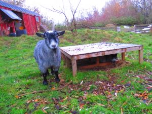 Sweet fluffy goats growing their winter coats. And their tummies. A couple of visitors asking if Sky was pregnant, and being somewhat shocked that she isn’t. oh dead. We’ve cut down on rations, but apparently it hasn’t had much effect yet. And going to a couple of weeks without the treatbag has done nothing either.