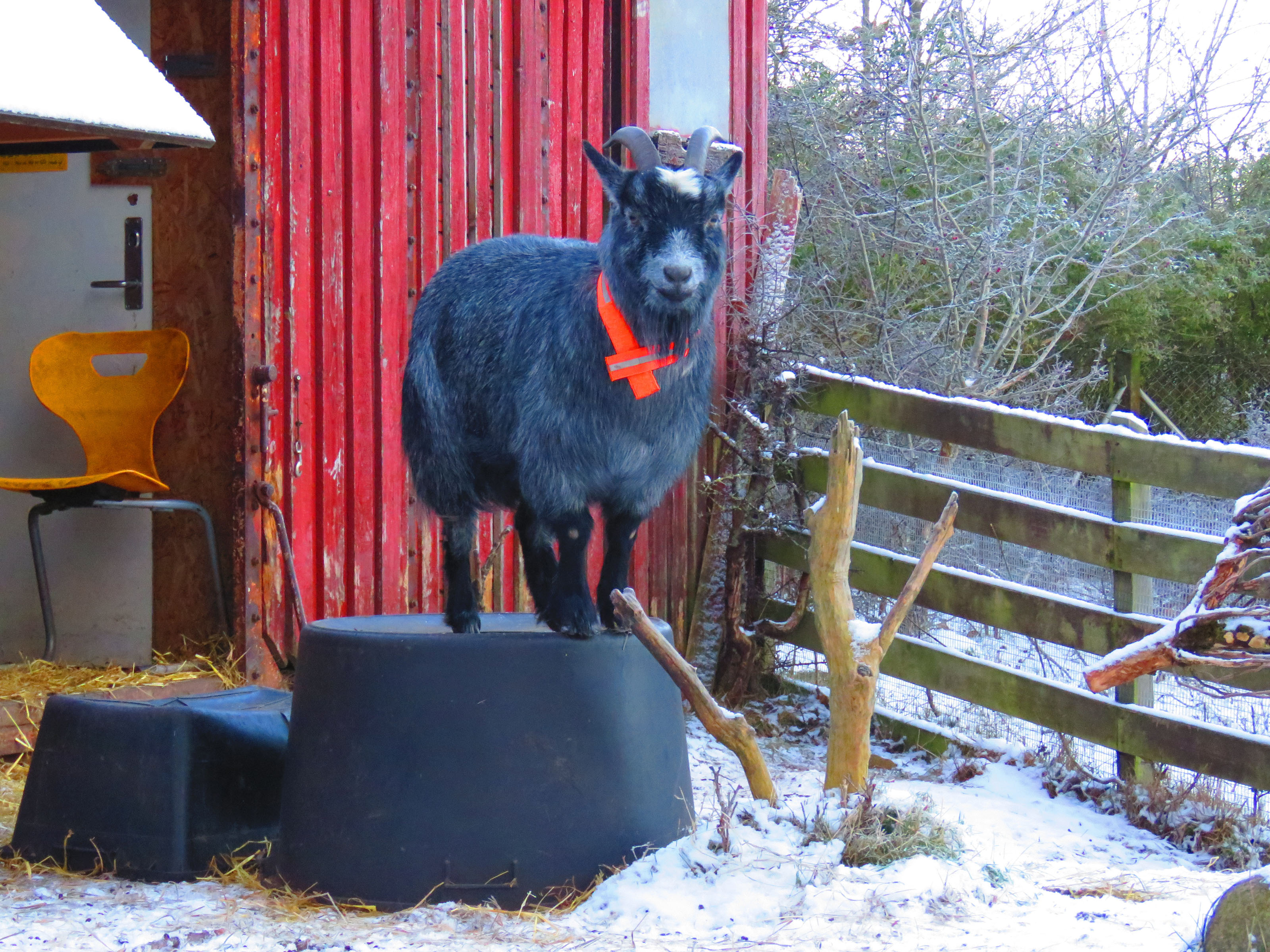 Funniest thing was when Luna was in the middle of eating from a breakfast bowl and then visitors came to the fence and she started bleating to them. While still eating. Always sounds funny when they bleat while they eat. Eating is too important, you can’t stop that. But sometimes you also just have to bleat. Funny how if humans talk with the mouth full it’s gross, but when goats do it it’s adorable. Actually it’s like that with a lot of things. Everything’s just better when it’s done by goats.