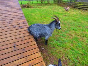 Sweet visitors today too. The kid from last time who was all excited to get goat kisses and shake paws, was back. He seems to really loved the goats. He had some carrot sticks, I think they were actually for himself, but he asked if he could give them to the goats. And I told him that would be nice. Later he came back and he had a cup of hot cocoa, warmed over Jeanette’s campfire, and he asked if I wanted some. I told him no, that’s ok. But he sure is nice and sharing! And he was excited again when Luna licked his hand, and he was just walking around with us and asking questions. Sweet kid.